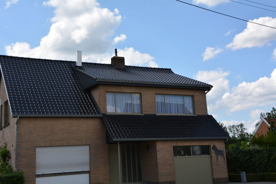 Renovatie van een bestaand dak en vervangen van de bakgoten door zinken hanggoten. Bekleden van de oversteken met plastiek.